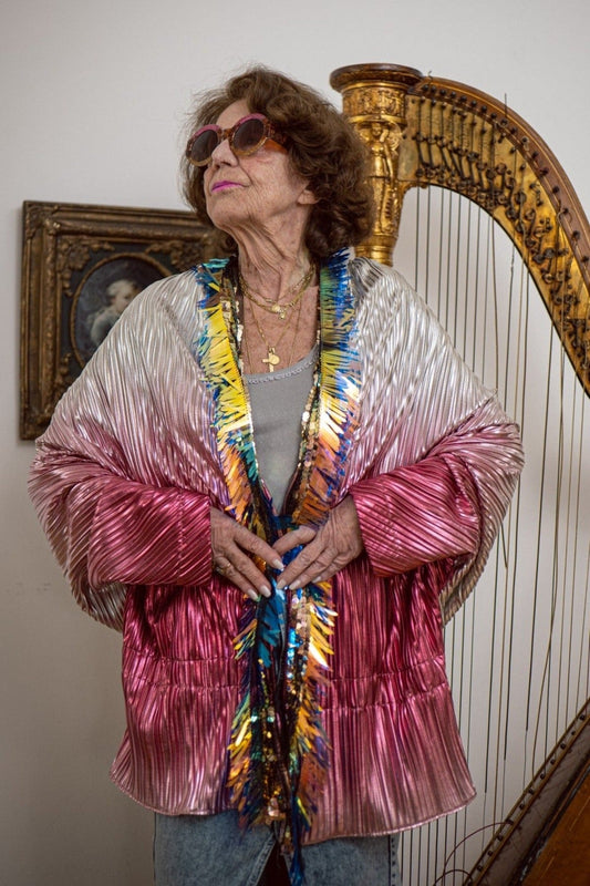 Кимоно в ярък сребрист цвят с балеаж