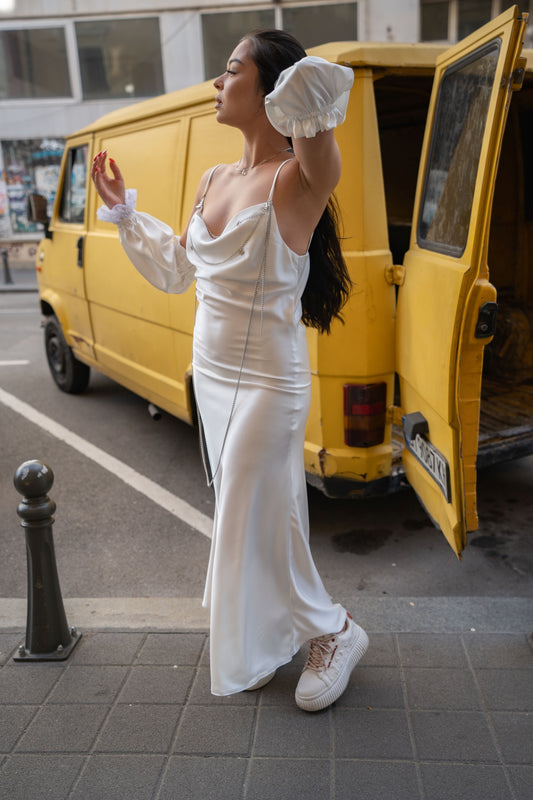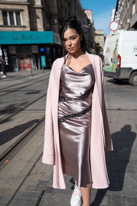 Сатенена рокля със синджири – Перфектен баланс между елегантност и ежедневен стил